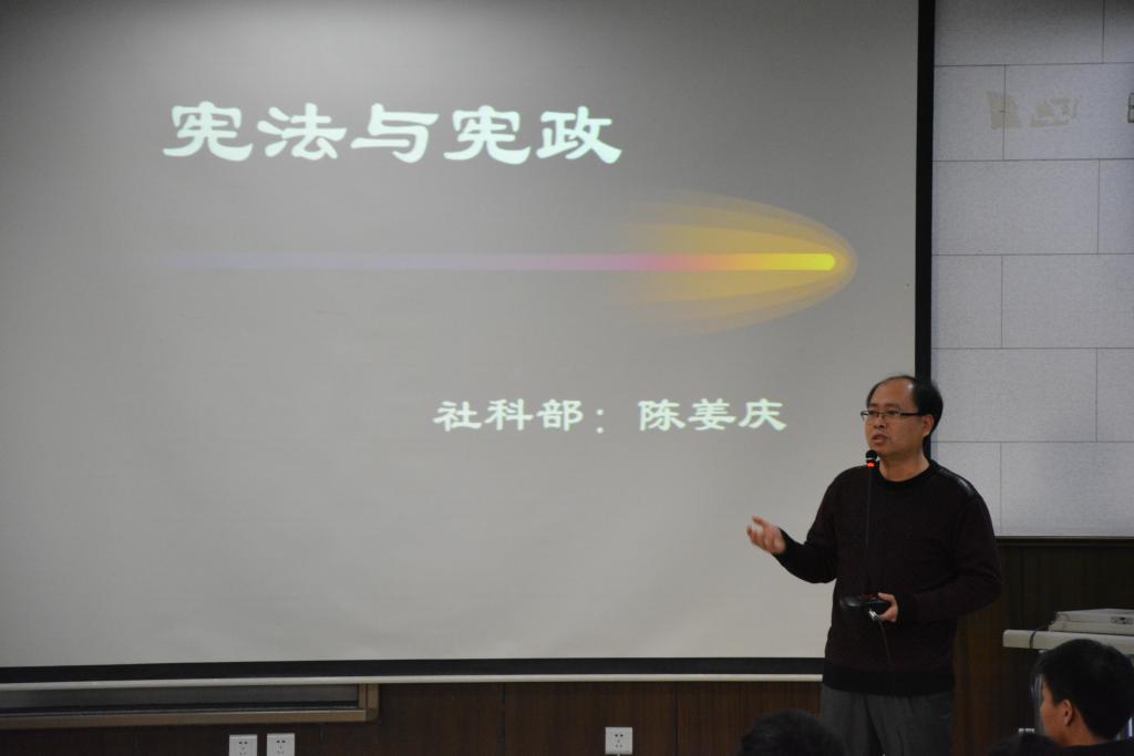 宏扬宪法肉体,党委教工部约请社科部旧姜庆教员为同砚们干了大旨为《宪法取宪政》的博题道座。