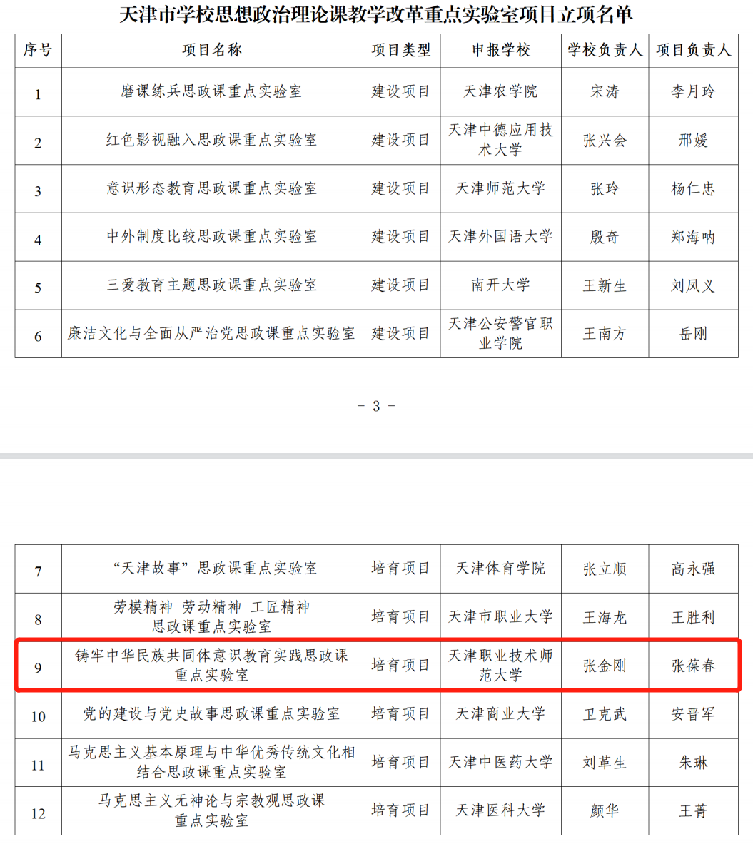 【迎盛会 创标杆】天职师大获批天津市铸牢中华民族共同体意识教育实践思政课重点实验室、天津市思政政治理论课教师进修学院项目