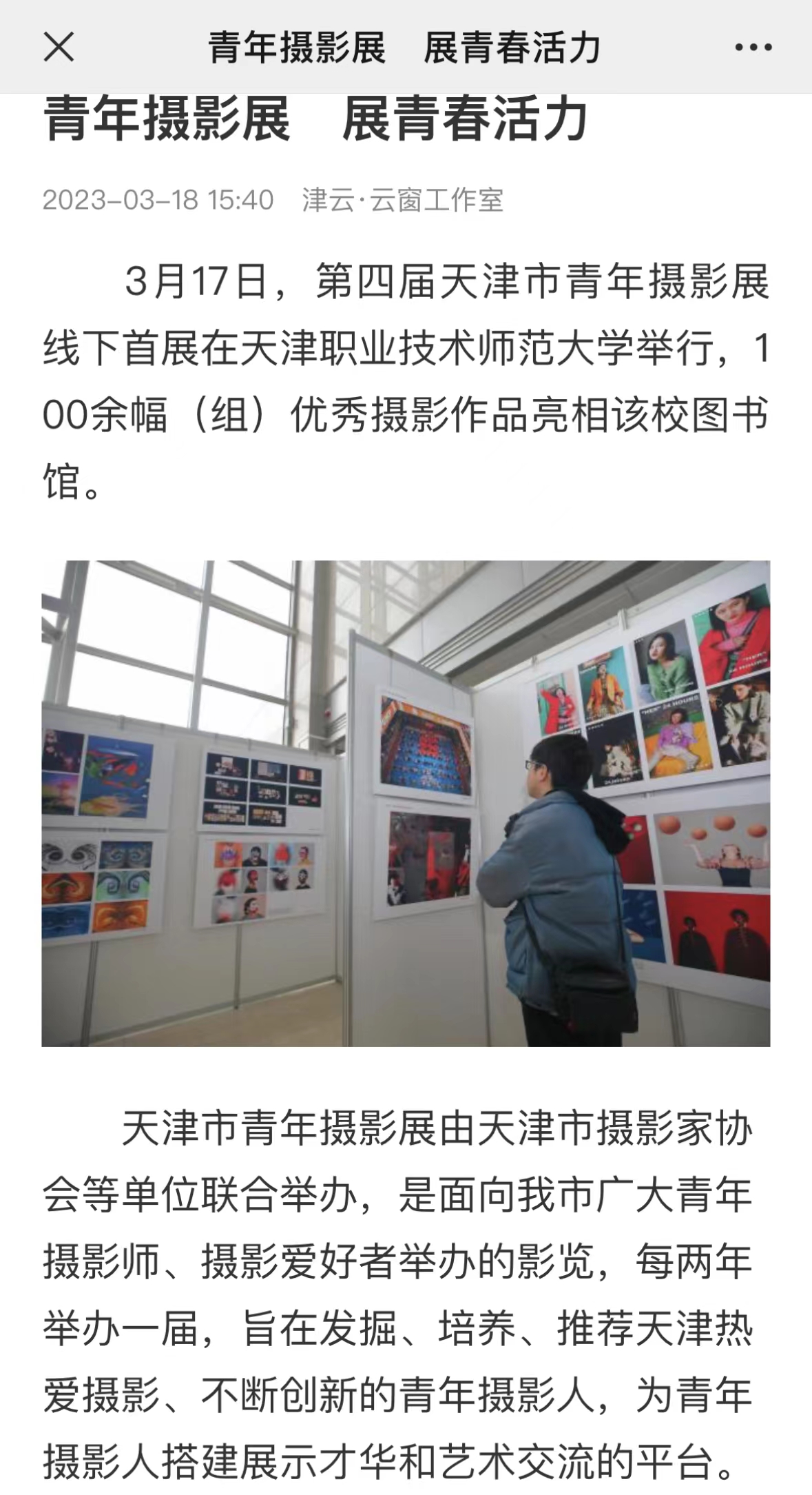 齐文以下:3月17日,第4届天津市青年照相铺线停尾铺正在天津工作技能师范年夜教举办,100余幅(组)良好照相大作明相该校藏书楼。